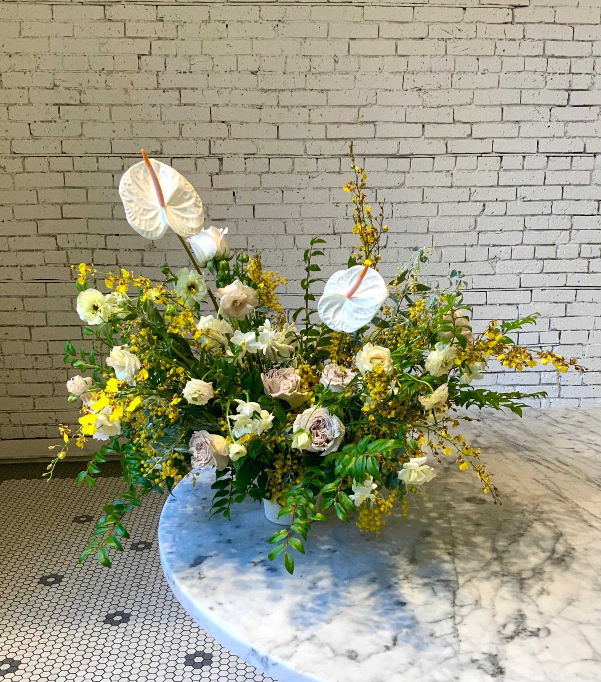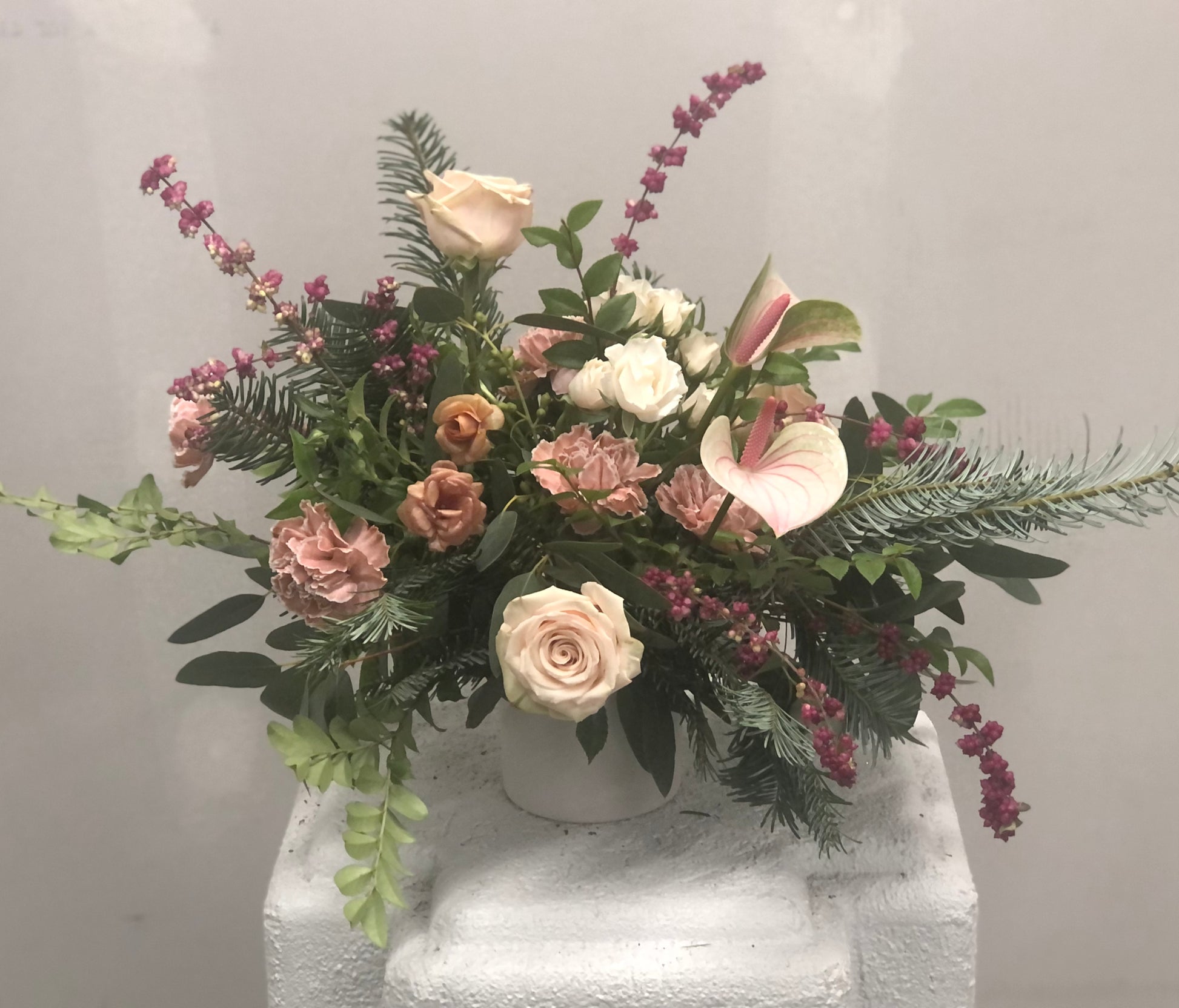 Explore your creativity using the rich and unexpected textures of winter in this small and focused class. We will have plenty of gorgeous, unusual, seasonal material to work with. Working with large scale florals like banksia and protea mixed with evergreens and winter berries and branches in a frosty winter palette, we will learn how to structure a large, dramatic arrangement, choose and condition flowers and foliage, make striking color choices and express our individual creative voices!
